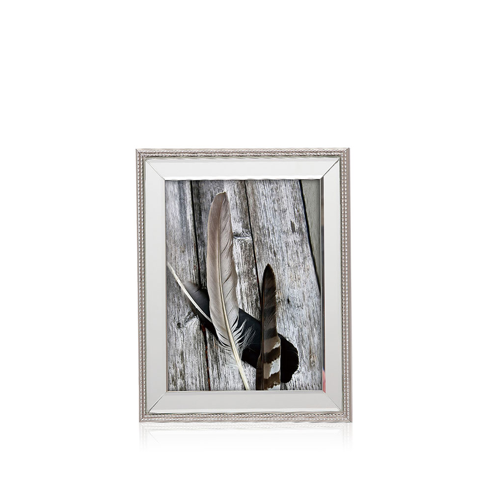 Portarretrato espejado. Borde con guarda metálica texturada. De inspiración francesa, trasmite glamour y estilo. Pensado para ambientes sofisticados. Tamaño de la foto: 15x20cm
