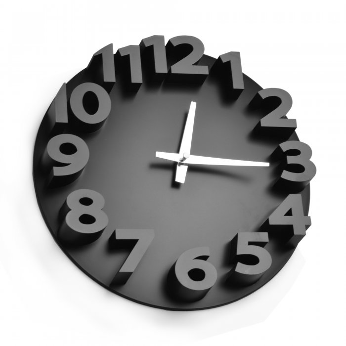Reloj de pared. Números en relieve. Plástico. Agujas metálicas. Diámetro 30cm
