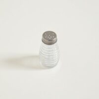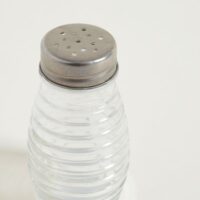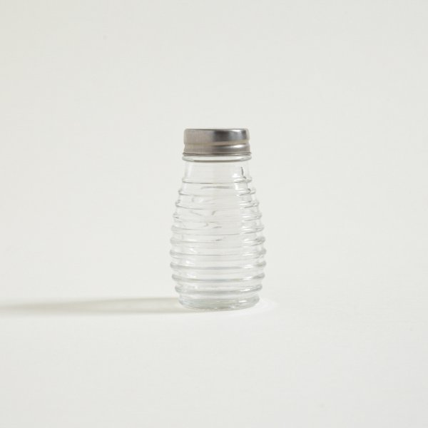 Salero de vidrio. Diseño rayas. Tapa perforada de acero. Capacidad: 75ml