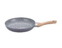 Sartén línea granito. Para cocciones de media duración y freir. Aluminio de 2,1mm de espesor. Triple capa de antiadherente cerámico. Difusor de calor espiral. Tecnología Soft Touch en el mango con diseño símil madera. Gracias a su material, los alimentos se deslizan fácilmente y no se pegan, reduciendo el consumo de aceite y dando como resultado comidas más sanas. Fácil de lavar debido a su antiadherencia. Apto para cocinas a gas, vitrocerámicas y eléctricas. Diámetro: 20cm. Largo: 38cm. Alto: 4cm