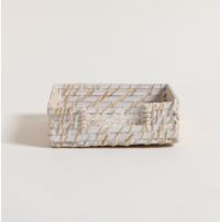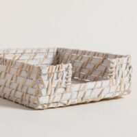 Servilletero realizado en bamboo y rattan color blanco. Línea Vinh. Diseño delicado y rústico. Medida: 18x18cm