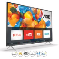 Marca AOC. Smart TV 50″ Ultra HD. Resolución De Video 4K. Resolución 3840×2160. Frecuencia De Refresco De Pantalla 60Hz. Youtube, Netflix. 2 Parlantes de 16W. Modos De Sonido SAP/Mono/Stereo. Función De Sonido Dolby Digital DTS. WiFi integrado. 2 puertos USB con reproducción multimedia. 3 entradas HDMI. Incluye sintonizador de TV Digital Abierta e interactividad con Ginga.ar. Dimensiones: 8,6cm de profundidad, 112,8cm de ancho, 65,9cm de alto. Dimensiones con base: 112,8cm de ancho, 71,7cm de alto, 24,8cm de profundidad.