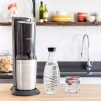 Marca Sodastream. Modelo Crystal. Diseñada para ser la más exclusiva máquina gasificadora del mundo. Permite elaborar y servir agua gasificada y refrescante en una elegante jarra de vidrio, que decorará cualquier mesa. Gasificado automático. Se adapta a todos los cilindros Sodastream. Sistema de unión automática de botella. Diseño elegante. La caja incluye: 1 Máquina SodaStream Crystal. 1 Cilindro de Gas CO2 SodaStream de 60L. 1 Botella de vidrio. Medidas de la máquina: 44cm x 24cm x 11cm (Al x L x An). Medidas de cilindro de gas CO2: 36cm x 5,5cm (Al x An). Medida de botella: 25,5cm x 8,5cm (Al x An)