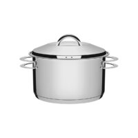 Marca Tramontina. Línea Solar. Cacerola honda con tapa de acero inoxidable. Fondo triple (acero inoxidable – aluminio – acero inoxidable) que distribuye el calor uniformemente, proporcionando una cocción más rápida, puede mantenerse el fuego bajo durante toda la preparación y así ahorrar energía. Comidas más sanas, el acero inoxidable no libera ningúntipo de residuo. Apto cocción a gas, eléctrica, vitrocerámica e inducción. Apto horno, hasta 260°C. Apto lavavajillas. Recomendaciones: evitar dejar alimentos en la cacerola durante mucho tiempo, puede provocar manchas. Para mantenerla siempre linda y brillante, después del lavado enjuague la cacerola con agua caliente y séquela inmediatamente. Largo: 33cm. Diámetro: 26,3cm. Alto total: 19,5cm. Capacidad: 6,1l