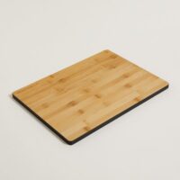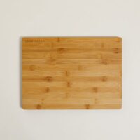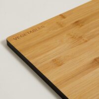 Tabla de bamboo. Rectangular. Borde negro. Indicador corte de vegetales. Largo: 39cm. Ancho: 28cm