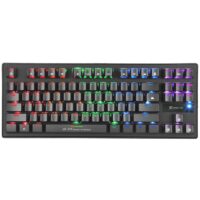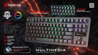 Marca Xtrikeme. Teclado de juego mecánico. Llaves: 87. Clasificación de conmutación: 50 millones de prensas. Ruta clave: 4,0 a 0,4 MM. Fuerza de funcionamiento: 60 a 5 G. Luz de fondo: arco iris de 5 colores con 8 modos de iluminación. Interfaz: USB2.0. Longitud del cable: 1.5M. Compatibilidad con el sistema operativo: Windows 7 o posterior. Funciones: Teclas FN para la función Multimedia. FN+WIN, función de bloqueo WIN. Soporte anti-fantasma 29 teclas rollover.