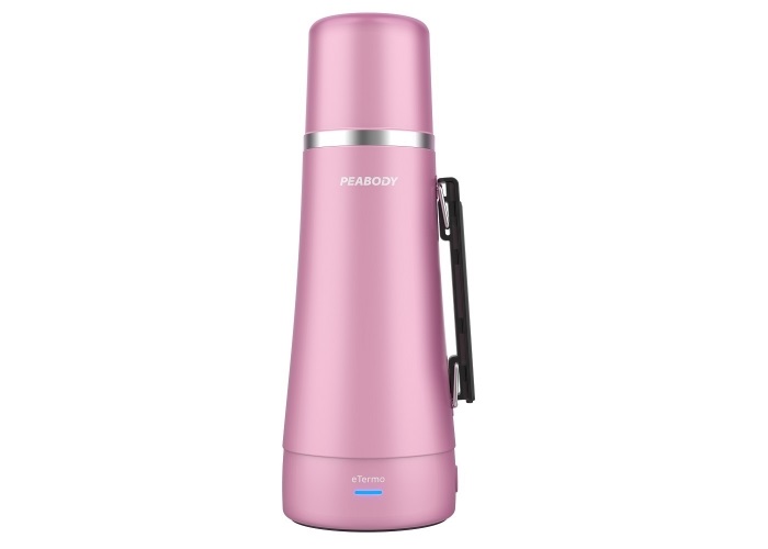Marca Peabody. Termo eléctrico E-Termo. Capacidad: 1 litro. Doble capa de acero inoxidable con aislación de vacío (18/8). Libre de PBA2. Temperaturas de corte: “MATE” y “MÁX”. Indicador luminoso de temperatura. Tapón cebador con cierre antigoteo. Tapa mate térmica, conserva la temperatura durante toda la cebada y logra que la yerba se lave menos. Bombilla integrada en la manija, no se tapa y de fácil limpieza. Incluye cable de alimentación extraíble, para calentar el agua donde quieras en 6 minutos. 700W de potencia. Medidas: Medidas: 33cm de alto, 12cm de ancho, 12cm de profundidad.