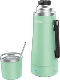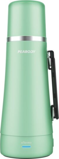 Marca Peabody. Termo eléctrico E-Termo. Capacidad: 1 litro. Doble capa de acero inoxidable con aislación de vacío. Libre de PBA2. Temperaturas de corte: “MATE” y “MÁX”. Indicador luminoso de temperatura y stand by. Tapón cebador con cierre antigoteo. Tapa mate térmica, conserva la temperatura durante toda la cebada y logra que la yerba se lave menos. Bombilla integrada en la manija, no se tapa y de fácil limpieza. Incluye cable de alimentación extraíble, para calentar el agua donde quieras en 6 minutos. 700W de potencia. Medidas: Medidas: 33cm de alto, 12cm de ancho, 12cm de profundidad.