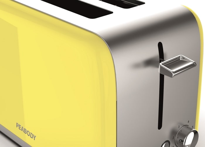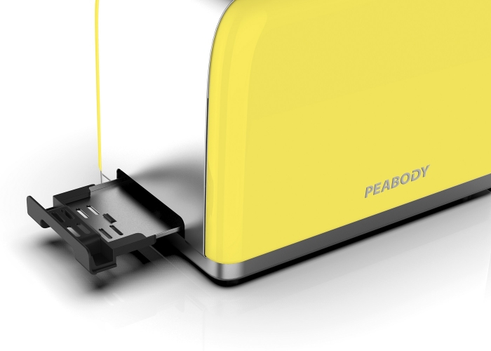 Marca Peabody. Tostadora dos ranuras. Cuerpo de acero inoxidable. 1050W de potencia. 3 Funciones: descongelar, recalentar y cancelar. 6 niveles de tostado. Bandeja colectora de migas extraíble. Espacio guarda cable. 2 Ranuras anchas.