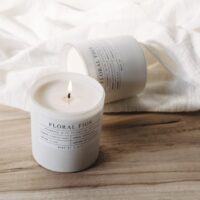 Vela de cera de soja. Fragancia Green Leaves (Lima, té verde y Yuzu). Portavela de vidrio blanco acabado mate. Duración: 50/60hs. Tamaño: 8,5cm x 8,5cm.