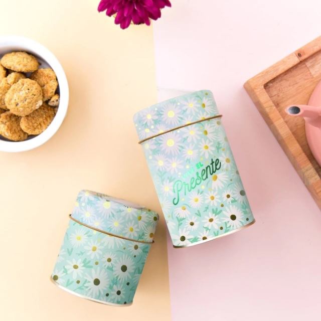Juego de latas alta y baja metálicas, para llevar a donde quieras. Impresas en litografía con detalles metalizados y pico vertedor de plástico. Latas Yerbera Metálica: 400cc. Latas Azucarera Metálica: 200cc.